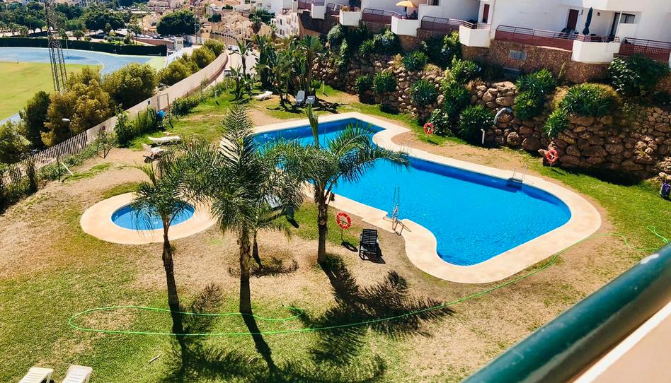 Apartamento de alquiler en Nerja de unos 70 m2, 2 dormitorios, baño, salón-comedor, cocina equipada, semi-amueblado, terraza con vistas al mar, aire acondicionado, parking, piscina y jardines comunitarios.