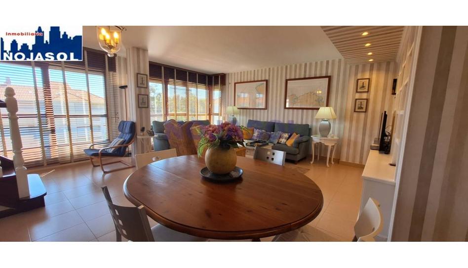 Un amplio y luminoso salón-comedor de estilo moderno con grandes ventanales lo que nos permite tener unas vistas de fondo al mar y dada su orientación ESTE , poder ver el amanecer desde dicha estancia. Los estores que tiene son un poco "sensibles" y es conveniente no tocarles mucho.
