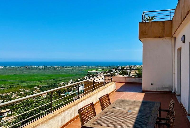Magnifico apartamento, listo para entrar a vivir, en la urbanización Cima del Mar de Monte Pego, único en su especie, muy amplio y luminoso. Consta de 4 dormitorios dobles, 3 baños completos (dos de ellos en suite), un ase de cortesía, una amplio salon comedor, una cocina totalmente equipada, lavadero/trastero, una increíble terraza de unos 50m2 con vistas panorámicas al mar y al parque natural de la Marjal de Pego. Suelos de mármol, persianas automáticas, parking, aire acondicionado por conductos, etc. En la urbanización podemos encontrar una preciosa piscina con vistas al mar, zonas ajardinadas, piscina interior, saunas y gimnasio, una zona de ocio con bar y restaurante, pistas de tenis y demás amenities. Ubicado a tan solo 10km de la playa, 6km del centro de Pego, 10km del centro comercial de Ondara con todos los servicios imaginables y a 17km del centro de Denia. Hay video disponible. Para mas información no dude en contactar.