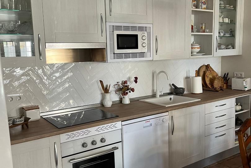 La casa está Reformada completamente con materiales de gran calidad, muros de 1 metro, el agua caliente y la calefacción va con gas natural. En la planta superior se encuentran las 3 habitaciones, dos son amplias con cama matrimonial, una con armario empotrado y balcón, la otra habitación es pequeña, ideal para invitados, tiene una cama armario que se recoge para tener mas espacio, se puede ver en uno de los videos, dos de las habitaciones tiene balcón ideal para tender la ropa. En la casa se quedarían todos los muebles que se ven en las fotos, la propiedad no puede quitar ningún mueblo (si los retiran a un trastero o almacén tendrán que dejarlo como estaba cuando iniciaron el contrato), hay armarios empotrados en la zona del salón y cocina para útiles de limpieza y todos los enseres menos todo lo relacionado con cama y baño.