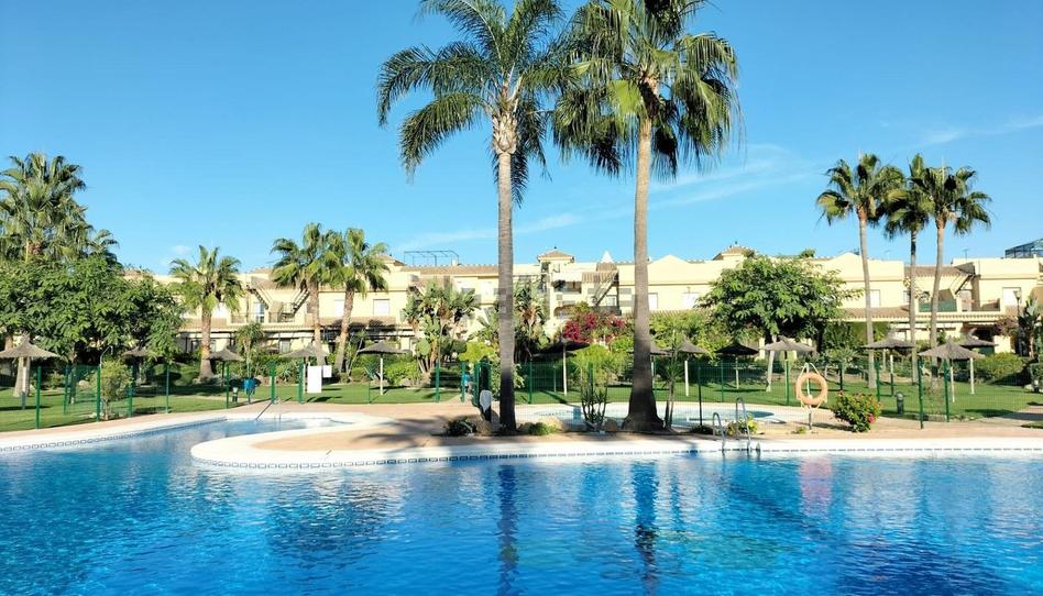 Ático en alquiler en Urbanización Ballena Paraíso, Costa Ballena, Rota. Signatura RTA (VUT/CA/13735). Capacidad (n. º máximo de plazas): 6 personas (incluidos adultos, niños y bebés que duerman en cama). Mascotas: No se admiten. Periodo de funcionamiento: 01/01-31/12. Aire acondicionado frío-calor en salón y dormitorios. 3 dormitorios, 2 baños (1 incorporado con bañera y otro con ducha/mampara), salón comedor, cocina independiente, terraza 12 m2 (2 toldos) y acceso a solarium privado de 43 m2 (sombrilla grande). Plaza de garaje en superficie cubierta. Lavadora, lavavajillas, cocina vitro de 4 fuegos, microondas, horno, frigo, dos TV en salón y dormitorio principal. 1 cama doble 150 en hab. ppal, 2 camas simples 90 en hab. 2ª, y litera (cama de abajo 90 y de arriba 80) y cama de 80 en hab. 3ª. Sofá 2 plazas + 2 butacas con chaise-longue y 1 butaca, mesa y 6 sillas en salón, mesa y 6 sillas en terraza. 4 armarios empotrados. Ascensor. En Urbanización, con 2 piscinas (adultos y niños), pistas de padel, campo de fútbol, chiringuito y área infantil. La vivienda dispondrá de al menos: vajilla, cubertería, cristalería, sartenes, ollas, cubiertos para servir, sacacorchos, abridor, tijeras, abrelatas y escurridor. Batidora, tostadora o grill, exprimidor y cafetera. Tendedero, plancha y tabla de planchar. Separación selectiva de residuos. Secador de pelo. Perchas. Ropa de cama, lencería y almohadas en función a la ocupación de la vivienda y un juego de reposición de la ropa de cama. Botiquín de primeros auxilios, extintor, detector de humos en zona próxima a la cocina, hojas de quejas y reclamaciones, información turística, instrucciones de funcionamiento de los electrodomésticos u otros dispositivos. WIFI.