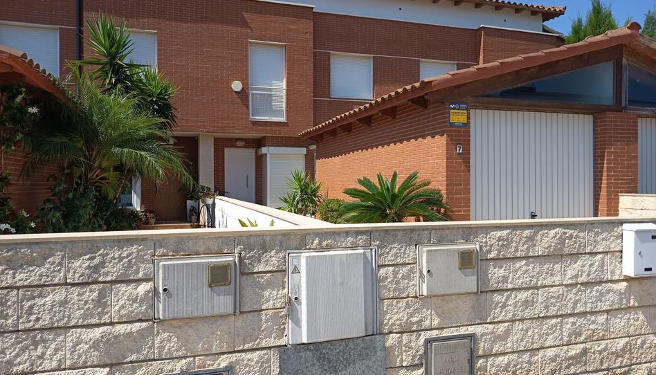 Se trata de una vivienda unifamiliar que forma parte de una Promoción de viviendas en hilera con zonas comunes ajardinadas, construida en el año 2004, situada en lo alto de la población. La vivienda está compuesta por: planta baja: recibidor, cocina con inducción y horno, lavadero, garaje, de una superficie de 20 m2, un baño completo con plato de ducha con mampara, comedor con acceso a una terraza de uso privativo (5m. x 5m. aprox.) y a la zona comunitaria ajardinada con piscina; planta primera: dos habitaciones individuales exteriores, una habitación doble exterior con vistas al castillo y a la zona ajardinada, un vestidor, un baño completo con bañera y mampara; planta segunda: una buhardilla destinada a estudio y sala de estar con una terraza para tender la ropa de ( 3m. x 2m. aprox.).