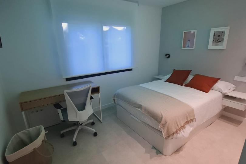Habitaciones cuentan con cama de matrimonio, baño completo, tv, office con frigorífico, vitrocerámica, microondas, gran armario, gran espacio para almacenamiento, ropa de cama y limpieza de estas.