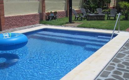 DISPONIBLE SEPTIEMBRE Chalet en parcela de 1300 m, 160 m. de vivienda, distribuida en 4 dormitorios, dos de ellos de matrimonio, ( cama de 1,50) con un baño cada uno, otros dos dormitorios ( 2 camas de 1,05 cada una) con un baño común, amplio salón, buhardilla con 4 camas de 1,05. Amplísima cocina comedor, amplio porche trasero con mesa para 10 personas, techado y con cocina exterior,plancha, vitro, despensa ,frigorifico, aseo exterior con ducha en la zona de la piscina, Piscina con cascada de 8 x 4,