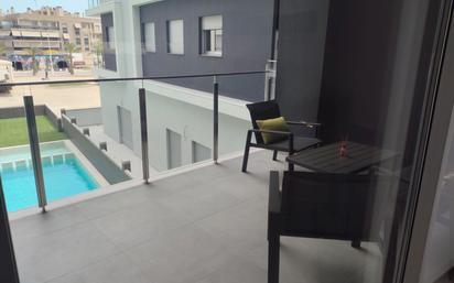 EN ALQUILER, a ton sólo 5 km de Elche, piso a estrenar en uno de los mejores edificios recién construidos en La Hoya, 90 m2 de vivienda, distribuida en 3 habitaciones (2 de ellas equipadas, y la tercera vacía, pudiéndose utilizar como multiusos), 2 baños, y en concepto abierto el salón cocina, con aire acondicionado con bomba frío-calor, construido con calidades inmejorables y excelente ubicación, con piscina comunitaria y parking y una terraza de 14 m2, la vivienda está amueblada, orientación al este y al oeste. NO SE ADMITEN MASCOTAS.