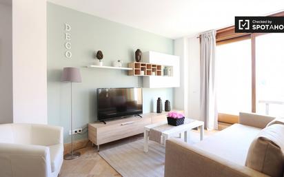 Este luminoso apartamento de 2 dormitorios en la Calle de Emilio Rubín, en Hortaleza, está ubicado en un edificio recientemente renovado con una hermosa piscina comunitaria disponible durante los meses de verano. El apartamento exterior está equipado con aire acondicionado y tiene 2 baños modernos, cocina totalmente equipada y una sala de estar que se abre a una soleada terraza privada. El apartamento está ubicado en una de las zonas más ricas de Madrid, rodeado de comercios y restaurantes. El encantador y tranquilo Parque Pinar Del Rey está a poca distancia, y puedes acceder a la autopista M30 y al transporte público en las inmediaciones.