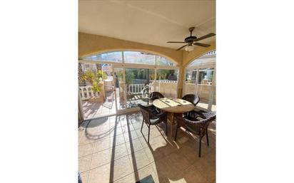 DISPONIBLE DESDE EL 26 DE ENERO PARA TODO EL AÑO. Encantadora vivienda situada en la exclusiva urbanización cerrada Zeniamar 5, en Playa Flamenca. La propiedad ofrece 3 dormitorios (uno de ellos en la planta superior con sofá cama y zona de oficina) y 2 baños con ducha. En la planta principal se encuentra una cocina abierta con zona de comedor y salón, muy luminosa y funcional, que conecta con una terraza acristalada ideal para disfrutar del espacio durante todo el año. En la primera planta hay otra terraza y, además, la vivienda cuenta con un amplio solárium privado en la azotea. Incluye lavadero con lavadora y secadora, trastero y plaza de garaje cerrada. La casa se sitúa frente a la piscina principal del residencial y también tiene acceso a una segunda piscina en la parte trasera. Su ubicación es perfecta: dentro de una comunidad tranquila y cuidada, cerca de bares, restaurantes y servicios, y a poca distancia a pie de las playas de Playa Flamenca y Punta Prima. Ideal para disfrutar de la vida mediterránea durante todo el año.