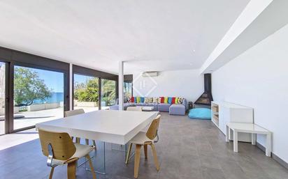 Lucas Fox presenta esta exclusiva villa de lujo en primera línea de mar, ubicada en la playa del Faro de Vilanova i la Geltrú. Esta magnífica casa ofrece maravillosas vistas al mar y acceso directo a la playa desde su propio jardín. La vivienda se asienta sobre una parcela de 1.500 m². Al entrar, un elegante distribuidor nos da la bienvenida, conduciéndonos a una luminosa cocina office totalmente equipada, con acceso directo a la terraza. A continuación, encontramos un espacioso salón-comedor con chimenea y grandes ventanales que abren paso a la amplia terraza, ideal para disfrutar del sol y de las impresionantes vistas al mar. Esta terraza se conecta directamente con el extenso jardín, perfecto para contemplar las hermosas puestas de sol gracias a su ubicación privilegiada. En esta planta también hay un baño completo con plato de ducha, una despensa, un amplio lavadero y un garaje con capacidad para dos vehículos. En la planta superior, destinada a la zona de noche, se encuentran cuatro dormitorios dobles, todos exteriores, diseñados para ofrecer comodidad y privacidad. Además, cuenta con dos baños completos, uno con plato de ducha y otro con bañera de hidromasaje. El dormitorio principal dispone de su propio baño privado con plato de ducha y bañera de hidromasaje, un amplio vestidor y una magnífica terraza con increíbles y privilegiadas vistas al mar. La villa disfruta de una excelente orientación hacia el mar y una gran luminosidad, características destacadas de esta propiedad. Ofrece una combinación excepcional de lujo y confort, con el añadido del acceso directo a la playa. Los amplios espacios interiores y exteriores, las excepcionales vistas panorámicas al mar y la exclusiva ubicación hacen de esta vivienda una oferta única.