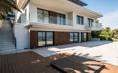 Presentamos esta impresionante casa recién reformada, nueva a estrenar, ubicada en la prestigiosa zona de Bellamar en Castelldefels. Donde podemos contemplar unes panorámicas a toda la costa. La casa está diseñada para contemplar las magníficas vistas, desde cualquier rincón de la vivienda, gracias a los grandes ventanales. Compuesta por estancias de grandes dimensiones y techos altos, realzan la majestuosa vivienda. Toda la vivienda tiene instalación de domótica y sistema de seguridad para favorecer confort y seguridad. La distribución de la vivienda: El acceso desde la calle está el garaje cubierto para tres coches grandes, más dos o tres en porche. Des del ascensor, accedemos al Spa. Sala Spa compuesta por una sauna turca, una sueca, un baño completo y la gran bañera de mármol junto a la ventana para relajarse con las vistas. Rodeada de jardín, se encuentra el acceso a la casa. En planta baja, destacamos el inmenso espacio diáfano, que nos muestra el mar como si de un cuadro se tratara. En esta planta, solo tenemos el salón comedor que quedará diferenciado una vez amueblado, un baño de cortesía y la inmensa cocina y su isla para disfrutar cocinando, creando y compartiendo en la gran barra de mármol. La cocina está totalmente equipada con electrodomésticos de altísima gama como es Gaggenau. Desde el salón, salimos a una de las terrazas. También desde el salón accedemos a buhardilla abierta y grandes vigas de madera que dan calidez a la estancia. A la planta inferior, zona de noche, podemos acceder por las escaleras o por el ascensor. Esta planta está compuesta por 5 suites completas. Cada una de ellas, dispone de su baño completo, armarios empotrados. La Master suite, es magnífica, estancia abierta. Compuesta por una grande ducha doble, bañera de mármol, la gran pica también de mármol con espejos colgados. El vestidor también abierto, iluminado exquisitamente. Todas las habitaciones tienen salida a una terraza. Bajando las escaleras, nos dirigimos a la planta de ocio. Compuesta por una sala de cine y otra sala grande con cocina, pensada como sala de juegos con salida directa al jardín, piscina y jacuzzi. También dispone de bodega. El jardín está diseñado de forma inteligente. Con la piscina escamoteable para disponer de más jardín y aprovechar cada metro exterior. La casa es única e increíble. Lujo, elegancia y modernidad, en una sola vivienda. Ubicación de la Propiedad La casa está ubicada en la prestigiosa zona de Bellamar en Castelldefels, una de las áreas más exclusivas y codiciadas de la región. Bellamar es conocida por sus impresionantes vistas panorámicas de la costa, que se pueden disfrutar desde cualquier rincón de la vivienda gracias a los grandes ventanales. Castelldefels es una ciudad costera situada a unos 20 kilómetros al suroeste de Barcelona, lo que la convierte en un lugar ideal para quienes buscan la tranquilidad de una zona residencial de lujo, sin renunciar a la proximidad de la vibrante vida urbana de Barcelona . La zona de Bellamar ofrece un entorno natural privilegiado, con playas de arena fina y aguas cristalinas, así como una amplia oferta de servicios y comodidades, incluyendo restaurantes de alta cocina, tiendas exclusivas y centros deportivos. Además, la ubicación de la casa permite un fácil acceso a importantes vías de comunicación, como la autopista C-32 y la carretera C-31, facilitando el desplazamiento hacia Barcelona y otras localidades cercanas. La proximidad al aeropuerto de Barcelona-El Prat es otro punto a favor, ya que se encuentra a tan solo 15 minutos en coche. Esta ubicación privilegiada, combinada con las características de lujo de la vivienda, hacen de esta propiedad una opción excepcional para quienes buscan una vida de alta calidad en un entorno exclusivo.