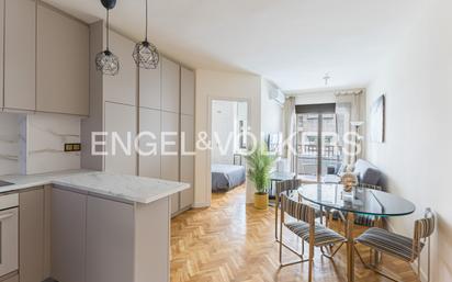 NECESARIO TENER CONTRATO DE TRABAJO INDEFINIDO EN ESPAÑA. NO ESTUDIANTES. NO MASCOTAS. Engel & Völkers presenta, en exclusiva, este luminoso apartamento exterior amueblado con terraza, en el barrio de Salamanca, Guindalera. La vivienda, al ubicarse en una 2ª planta exterior, es luminosa. Consta de salón con terraza, sofá en el salón, armario y mesa-comedor. Moderna cocina abierta al salón equipada (vitroceramica de 60cmx60cm, frigorifico - congelador, lavavajillas, horno). Además, la vivienda cuenta con un dormitorio amplio con cama doble con armario. La vivienda también cuenta con un baño a estrenar con ducha. Calefacción central con radiadores. Aire acondicionado por Splits en Salon y dormitorio. Edificio con ascensor. Portero en horario comercial. Salamanca, Guindalera. Situado en la tranquila calle Mexico, al lado de una de las arterias principales de la capital, la calle Francisco Silvela, la vivienda en ubica en una de las mejores zonas en cuanto a comunicaciones con el resto de Madrid, encontrando a escasos metros la zona de Diego de León y Avenida de América. Esta zona cuenta con una amplia gama comercial, oferta de ocio, cultura, lugares históricos, zonas deportivas y espacio residencial donde encontrar áreas escolares (parques, colegios, etc.). Dentro del ilustre Barrio Salamanca de Madrid, Avenida de América es estación de las líneas 4, 6, 7 y 9 del Metro de Madrid y además contiene una estación terminal de autobuses urbanos, interurbanos y de largo recorrido. Todo ello está situado a escasos metros de la propiedad, en la calle Francisco Silvela, la cual conecta rápidamente con otras arterias principales como la calle del Príncipe de Vergara o María de Molina. Una localización inmejorable.