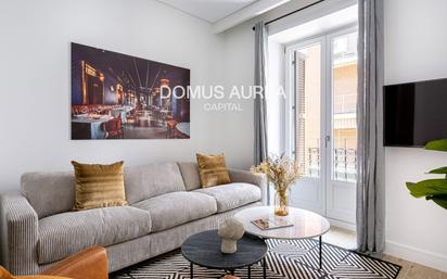 Domus Aurea Capital presenta este piso amueblado en pleno centro del distrito de Trafalgar, Chamberí. GASTOS Y LIMPIEZA INCLUIDOS EN EL PRECIO - ALQUILER TEMPORAL DISPONIBLE YA Piso de 90 m2 ubicado en la segunda planta de un edificio recién reformado muy cerca de la Plaza de Olavide. La vivienda cuenta con dos amplias habitaciones, una de ellas con baño en suite, con balcón a la calle principal. Cocina totalmente equipada con electrodomésticos de calidad, gran capacidad de almacenaje, decoración y calidades de alta gama. Finca con cerradura electrónica. Domus Aurea Capital es una boutique inmobiliaria especializada en la intermediación, construcción y gestión de activos inmobiliarios en las zonas prime de Madrid y alrededores
