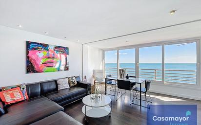 Inmobiliaria Casamayor te presenta este fabuloso piso en alquiler en primera línea con impresionantes vistas. La vivienda cuenta con 2 dormitorios dobles, gran salón con acceso a terraza desde la cual apreciarás las maravillosas vistas al mar. Dispone de 2 baños (uno de ellos un aseo). La vivienda se alquila amueblada. El acceso a la playa desde este apartamento es mediante ascensor, de esta forma podrás disfrutar del mediterráneo de la manera más fácil y práctica. *El presente documento tiene carácter meramente informativo, orientativo y no vinculante, por lo que no supone información contractual alguna, siendo su uso estrictamente comercial.