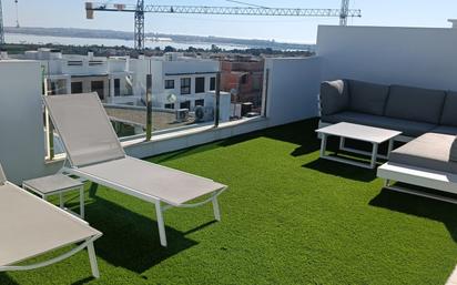 Disponible a partir de septiembre hasta junio Este atractivo apartamento se encuentra en una de las zonas más solicitadas de Torrevieja, cerca del mar y rodeado de todos los servicios necesarios para una vida cómoda: supermercados, restaurantes, centros médicos y transporte público. La vivienda está situada en un edificio moderno y bien cuidado, con ascensor y acceso adaptado, lo que la convierte en una excelente opción tanto para vivir todo el año como para disfrutar de estancias vacacionales. La propiedad cuenta con dos amplias habitaciones, ambas con armarios empotrados y gran luminosidad, lo que garantiza confort y privacidad para toda la familia o para invitados. Dispone además de dos baños completos, uno de ellos en suite en el dormitorio principal, con acabados de calidad y estilo contemporáneo. La cocina es funcional y está totalmente equipada, integrada en un amplio salón-comedor que invita a relajarse y compartir momentos especiales. Sin duda, el gran punto fuerte de este apartamento es su amplia terraza privada, ideal para disfrutar del clima soleado de la Costa Blanca. Con espacio suficiente para colocar una mesa grande, zona chill out o incluso un pequeño jardín urbano, esta terraza se convierte en el lugar perfecto para tomar el sol, leer o cenar al aire libre. Es una vivienda que combina comodidad, estilo y ubicación privilegiada, perfecta para quienes buscan calidad de vida junto al mar.