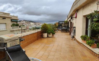 Desde Gallery Properties os presentamos esta acogedora vivienda con terraza privada, ubicada en pleno en el Farró de Barcelona. Con una distribución en forma de U, se caracteriza por la amplia terraza que rodea todo el piso. Cuenta con 4 Habitaciones, de las cuales, 1 de ellas es tipo suite, con armarios empotrados y una zona de jacuzzy; las otras habitaciones, 1 habitación doble con salida a terraza, una doble con ventana y vistas y una habitación individual (servicio). La cocina, con isla en medio, con acceso directo a la terraza y a la zona de aguas con tendedero (interior). El salón comedor es cuadrado con grandes ventanales y con acceso directo también la terraza. Dispone de 2 baños completos, uno con bañera (habitación suite) y el otro con cabina de ducha hidromasaje y sauna. También hay un aseo. Como características adicionales decir que hay calefacción a gas, Aire Acondicionado en todas las habitaciones y el salón comedor, cocina reformada recientemente, altillo en el pasillo, falso techo, caldera nueva, servicio de portería En el precio hay incluida una plaza de parking esquinera situada en la planta -1, con acceso desde el mismo edificio, donde caben perfectamente dos coches y una moto. De obligado cumplimiento de 2 años. Se pedirán referencias económicas. ITE pasada favorablemente. Rodeado de todo tipo de negocios y servicios. Muy cerca de la c/ Balmes y de los parques Monterols y Jardins de Enric Sagnier. En cuanto a comunicaciones, cerca del H6, de la parada de FGC Padua y de Ronda General Mitre. [IW]
