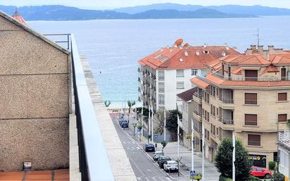 En alquiler piso de 2 habitaciones a 150 metros Playa de Silgar, con gran terraza con vistas al mar. En un radio de 100 metros dispone de todos los servicios básicos necesarios. Se distribuye en: Cocina independiente (lavavajillas. ), salón independiente, habitación con cama de 1.50cm, con baño completo con bañera, habitación con 2 camas gemelas y baño completo. Con gran terraza de más o menos 20 metros2, con vistas al mar, mobiliario de terraza. Ascensor, plaza de garaje. Piscina comunitaria. Ropa de cama y menaje de cocina. Pregúntenos información sin compromiso, no todos los meses y quincenas tienen el mismo precio.