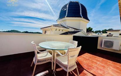 Se alquila hasta julio de 2026 un precioso bungalow en Altea la Vella, con 190 m² construidos y una distribución ideal en tres plantas que ofrecen amplitud, comodidad y mucha luz natural. En la primera planta se encuentra un acogedor salón comedor, una cocina totalmente equipada con galería y un baño; en la segunda planta se sitúan los tres dormitorios, un baño completo y una terraza muy soleada, mientras que en la tercera planta se disfruta de un magnífico solárium con vistas despejadas y una ducha perfecta para refrescarse en los días más cálidos. La vivienda cuenta además con tres terrazas en total y con plaza de aparcamiento propia. Ubicada en una urbanización exclusiva con piscina climatizada disponible durante todo el año, gimnasio y sala social para eventos, este bungalow ofrece un entorno tranquilo y confortable ideal para disfrutar de la belleza y el clima de Altea, reconocido por National Geographic como el pueblo más bonito de España 2025.