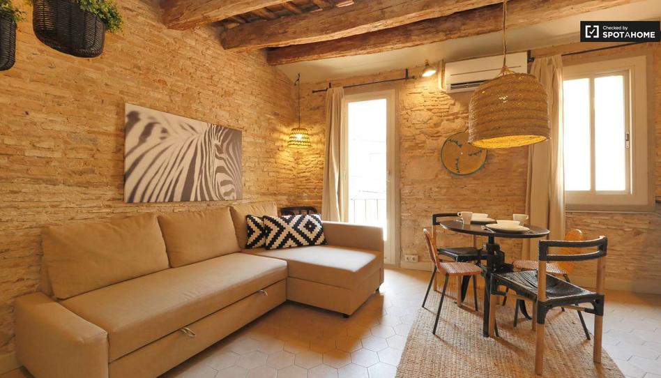 Un hermoso apartamento estudio con un hermoso balcón y aire acondicionado está disponible para alquilar en el histórico Barri Gòtic de Barcelona. El apartamento tiene una hermosa sala de estar con preciosas paredes de ladrillo visto, donde podrá relajarse en el acogedor sofá cama después de un largo día explorando la ciudad. La cocina tiene todos los elementos básicos, incluido un microondas.