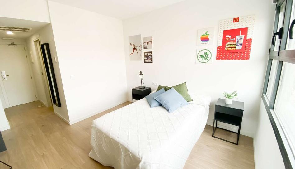Habitación individual con baño privado y cocina americana en Residencia de Estudiantes en Salamanca. Disfrutarás de este estudio y de las zonas comunes adaptadas para centrarte en tus estudios y sacar el máximo partido a tus horas de trabajo.