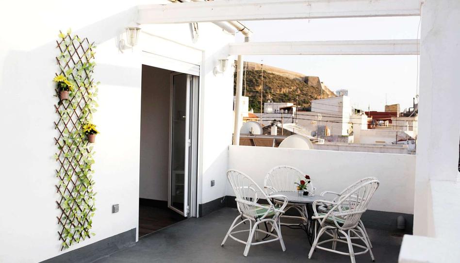 Precioso apartamento tipo loft con terraza. Incluye un espacio diáfano, ideal para pasar unos meses en Alicante, disfrutando de la casa y de la ciudad. En la casa tienes una terraza súper amplia, donde las casas de alrededor son más bajas, por lo que tienes más privacidad e intimidad, da el sol desde el mediodía hasta que oscurece, y tiene toldo y barbacoa. El interior de la casa es un espacio abierto con techos altos. Se encuentra a quince minutos andando de la playa del Postiguet, a cinco minutos de la parada de autobús al aeropuerto, y del Mercado Central, cerca de todo para ir andando.