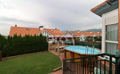 ZONA URB.LA MAGDALENA.REF.3135 !!!EXCLUSIVA!!! En Fincas Oraá, ponemos a la venta un maravilloso Chalet en EXCLUSIVA, de cinco habitaciones. Si estas buscado una casa pareada unifamiliar apartada del bullicio de la ciudad, pero bien comunicada... Disponemos de un Chalet, pareado, unifamiliar que va a cumplir con todo lo que buscas. Se distribuye en: PLANTA BAJA: Hall, recibidor, 1 habitación, aseo, salón de 30 m2, desde donde se accede a una preciosa terraza-porche y al jardín, cocina equipada, nueva, de 18 m2, con acceso directo también al porche. 1ª PLANTA: Habitación principal, de 20 m2 con baño completo, en suite, acceso individual al balcón y armarios empotrados. Habitación juvenil con armarios empotrados y acceso individual a otro balcón. Habitación de 14 m2 Baño completo. 2ª PLANTA: Bajo cubierta diáfana, con salón propio y habitación de 14 m2. Dispone así mismo, de un garaje directo para 3 coches, con puerta de apertura motorizada, y gran trastero y Txoko. El exterior esta rodeado de un jardín, muy cuidado Y con zona de barbacoa, cenador con celosía y piscina propia, todo en un solar de 180 m2. Toda el chalet tiene calefacción de gas natural, con termostato individual por planta. Los muebles, así como los acabados son de primera calidad y todo esta muy bien cuidado y decorado. Queda semi - amueblado.