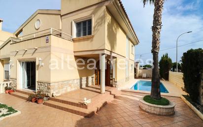 Venta de amplia casa pareada de 294 m2 construida en parcela de 400 m2 en una zona residencial de Alfaz del Pi, a solo 10 minutos a pie del centro y a 10 minutos en coche de la playa del Albir. Una bien construida y con espacios generosos en todas sus plantas. Distribución y espacios Planta baja: -Gran recibidor, con acabados en mármol. -Salón-comedor muy amplio con ventanales de gran formato que conectan directamente con la terraza y la zona de piscina. -Cocina independiente, de estilo clásico mediterráneo, con encimeras de -Dormitorio en planta baja, perfecto como despacho o habitación de invitados. -Baño completo. Primera planta: -Tres amplios dormitorios con armarios empotrados. -2 baños, uno de ellos en suite en el dormitorio principal. -Terraza amplia y soleada, con vistas despejadas, accesible desde el dormitorio principal y desde la segunda planta. Sótano diáfano: -Gran espacio multiusos actualmente utilizado como trastero, lavadero y garaje, con capacidad para hasta 3 vehículos. -Acceso cómodo y directo desde el interior de la vivienda. El exterior de la vivienda está pensado para disfrutar al máximo del clima mediterráneo. Cuenta con una piscina privada junto a una zona de solárium muy soleada y de fácil mantenimiento, perfecta para relajarse en cualquier época del año. En la parte frontal destaca una amplia terraza, ideal para crear un jardín personalizado o un acogedor espacio chill-out. La propiedad también ofrece una barbacoa cubierta con cocina de verano, ubicada en un porche tradicional con vigas vistas, un lugar perfecto para compartir reuniones familiares o comidas al aire libre. Además, dispone de conexión directa tanto con la cocina interior como con la zona de piscina, lo que facilita un uso práctico y continuo. En cuanto a calidades, la vivienda presume de una construcción sólida realizada con materiales de calidad, entre ellos mármol en escaleras y zonas nobles, y una cuidada carpintería de madera con barandillas clásicas. Está equipada con aire acondicionado, hilo musical en varias estancias y calefacción por radiadores (gasoil), garantizando confort durante todo el año. Las ventanas amplias proporcionan una luminosidad excepcional en cada estancia. En conjunto, se trata de una propiedad en buen estado general, bien mantenida y con un gran potencial para personalizarla al gusto del nuevo propietario. ACCESO ALFAZ DEL PI El Alfaz del Pi está a 49km de Alicante, 6km. de Benidorm y a 145km. De Valencia. Altea tiene fácil acceso por carretera tanto por autovía como por la Carretera Nacional N-332, pero también está conectada mediante autobús con las dos capitales de provincia de Alicante y Valencia y con Benidorm, además de un servicio de TRAM que lo conecta con Benidorm y Alicante. Para llegar a Alfaz del Pi por carretera, puedes tomar la Carretera Nacional N-332 o la Autopista del Mediterráneo AP-7, en la salida 64. Tiene fácil acceso a dos aeropuertos: -Alicante, a 57 km