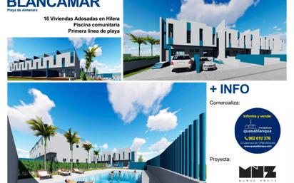 Si sueñas con que la brisa marina te despierte cada mañana y con desayunar en tu terraza con vistas al mar, pronto tu sueño puede hacerse realidad. Déjate sorprender por esta maravillosa promoción de próxima construcción de 16 adosados en hilera con piscina comunitaria y en primera línea de playa en una de las mejores y más tranquilas localizaciones de la playa de Almenara. Sé el primero en apuntarte en esta promoción de obra nueva, se respetará el orden cronólogico para poder elegir el adosado que te guste. Cada vivienda contará con las mejores calidades y estará distribuida en dos plantas junto con la planta baja en la que se situará el salón comedor, la cocina y un aseo, así como dos patios, uno habilitado como aparcamiento y el otro como terraza. En la primera planta, tres dormitorios dobles y dos cuartos de baño, y en la última planta otra amplia terraza que puede ser utilizada como solarium. Ven a informarte y descubre cómo los sueños se pueden hacer realidad. El barrio marítimo de Almenara, conocido como Casablanca, cuya playa está galardonada con bandera azul, cuenta con todos los servicios necesarios para poder vivir todo el año: farmacia, supermercado, varios restaurantes, panadería y centro de salud. Además de todos los demás servicios en el pueblo: supermercado, Urgencias 24 h, etc. Un mercado ambulante con gran variedad de paradas se instala todos los domingos en el paseo marítimo. La playa, cuya extensión es de tres kilómetros y medio, se caracteriza por un bonito paseo serpenteante de madera, varios chiringuitos a lo largo del mismo y una heladería en primera línea. La playa está principalmente compuesta por grava y arena dorada y cuenta con acceso para personas con movilidad reducida. Además, en la época estival se celebran diversas ferias comerciales y gastronómicas, así como actividades lúdicas y deportivas. En los alrededores, una amplia oferta de ocio para todos los gustos y edades: un embarcadero para los que les gusta pescar (pesca sin muerte), paseos en bici; para los amantes del motor y la velocidad el karting de Almenara playa, dispone de todo tipo de vehículos en función de la edad, con restaurante y zona de juegos para niños; y para los más intrépidos un aeródromo con ultraligeros y ala delta a motor, con posibilidad de clases particulares, cursos completos con titulación y alquiler de aeronaves. La naturaleza es abundante en la zona con los campos de arroz y el paraje natural protegido “els estanys” , con miradores para observar las aves, cuyas lagunas reciben el agua de lluvia de un rio subterráneo procedente de la sierra de Espada “els ullals”. El pueblo de Almenara a tan solo cuatro kilómetros, que aunque pertenece a la provincia de Castellón, se sitúa entre las dos capitales, Valencia y Castellón, está muy bien comunicado con las dos a través de carretera y tren. El núcleo urbano está situado en la falda de la montaña dónde se encuentra el castillo, rodeado de campos de naranjos. El pueblo cuenta con escuelas, instituto, tiendas, centro de salud, etc…