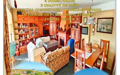 Magnífica vivienda en primera planta, ubicada en la Playa de Matalascañas – Almonte (Huelva), zona El Delfín. Cuenta con una superficie construida de 160m2. Se distribuye en recibidor, amplio salón con chimenea y terraza integrada en el propio salón, cocina amueblada y equipada, 3 cuartos de baños, 4 dormitorios, segunda terraza con vistas a la piscina de la comunidad. Cuenta con una plaza de aparcamiento de la comunidad asignada a la vivienda, piscina y jardín en zonas comunitarias. Vivienda muy luminosa y con buenas calidades. Se entrega semi-amueblada. Cuenta con servicio de mantenimiento anual por un conserje. El edificio dispone de ascensor. Zona residencial muy tranquila, próxima al centro de la población, supermercados, comercios, bares, Iglesia y a tan solo 320 metros de la playa. Ubicada en pleno Parque Natural de Doñana. Gran oportunidad como alojamiento vacacional para disfrutar de la playa y su entorno o como inversión para destinarlo a alquiler. Llámenos y venga a visitarla sin compromiso: 698 933 607 680 911 326 Precio: 220.000€ Honorarios de la Agencia Inmobiliaria, Gastos de Notaría, Registro, Gestoría e Impuestos (Impuesto de Transmisiones Patrimoniales (I.T.P), IVA o A.J.D, en su caso) no incluidos en el precio. Documento D.I.A (Documento Informativo Abreviado) a disposición del cliente que lo soliciten). Disponemos de departamento financiero.