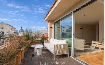 La vivienda cuenta con una soleada terraza de unos 25 m², orientada al sur, con vistas despejadas sobre Jorge Juan, ideal para disfrutar de momentos al aire libre en plena Milla de Oro madrileña.