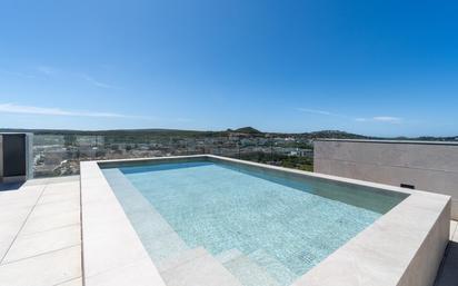 Ubicado en la prestigiosa zona de Santa Ponça, este exclusivo ático a estrenar forma parte de Santa Ponsa Living, un residencial moderno con excelentes calidades. La ubicación es inmejorable: rodeado de puertos deportivos, campos de golf, playas, comercios y todos los servicios, y a tan solo 15 minutos en coche de Palma. La vivienda se distribuye en un amplio salón conectado con una cocina de diseño totalmente equipada, creando un espacio funcional que combina estilo y confort. Desde esta estancia se accede directamente a una generosa terraza cubierta, perfecta para disfrutar de comidas al aire libre o momentos de relax. La orientación y los grandes ventanales aseguran una magnífica entrada de luz natural. Dispone de cuatro dormitorios dobles, todos exteriores, con armarios empotrados y gran luminosidad. Dos de ellos cuentan con baño en suite, ofreciendo mayor comodidad e independencia. En la planta superior se encuentra la joya de la propiedad: una espectacular azotea privada con piscina, zona de solárium y vistas despejadas al mar y al campo de golf. Un espacio único pensado para la relajación y la vida social. Entre sus equipamientos destacan: suelo radiante, sistema de aerotermia, domótica KNX, garaje subterráneo, jardines comunitarios y piscina comunitaria. Superficie construida: 154 m2 Finalización prevista: 2025