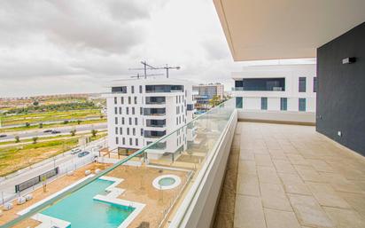 Magnífico ÁTICO a estrenar en Edificio Portia II, con una ESPECTACULAR TERRAZA de 30m2 aprox., PLAZA DE GARAJE, TRASTERO y unas estupendas zonas comunes con PISCINA COMUNITARIA, ZONA INFANTIL, PISTAS DE PÁDEL, SALA DE REUNIONES CON COCINA y SALA PARA CELEBRACIONES!! Tiene 65.47m2 útiles distribuidos amplio y acogedor salón con salida a su bonita espectacular terraza, en la que podrás disfrutar de unas vistas impresionantes mientras disfrutas de una agradable reunión con familia y amigos. Cocina independiente amueblada y equipada con placa vitrocerámica, campana extractora, horno y microondas, con salida a un práctico lavadero. Dos amplios dormitorios con armario empotrado y dos baños completos, uno con bañera en suite, y el otro exterior con placa de ducha. Excelentes calidades, solería de tarima y gres en zonas húmedas, ventanas climalit, puertas de madera lacadas en blanco, climatización central, tres armarios empotrados y placas solares. La zona de piscina está equipada con aseos y vestuario. Entregado en marzo de 2025. Situado en bloque con ascensor. No pierdas esta oportunidad y ponte en contacto con nosotros para visitarlo!! Informamos a nuestros clientes que el precio de venta no incluye lo siguiente: Honorarios de la agencia inmobiliaria, Impuestos (I.T.P., I.V.A. o A.J.D., en su caso) ni otros gastos de la compraventa (gastos de Registro de la Propiedad, Notaría, Gestoría ni de posible Financiación). Documento F.I.S. a disposición del consumidor según Decreto 218/2005 Junta de Andalucía.
