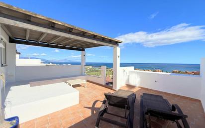 Maravilloso ático con solárium y vistas panorámicas al mar en La Duquesa Fantástico apartamento situado en Manilva Costa, a solo 500 m de magníficas playas de arena fina, donde podrá disfrutar del mar y acceder al paseo marítimo que conecta con el encantador Puerto de La Duquesa en pocos minutos caminando. Su entorno cuenta con una amplia oferta de servicios como supermercados, restaurantes, gimnasios y comercios, ofreciendo una vida cómoda durante todo el año. La vivienda presenta unas espectaculares vistas que abarcan toda la costa. Al entrar, la luz natural y el azul del Mediterráneo se convierten en protagonistas gracias a grandes ventanales que llenan cada estancia de claridad y armonía. Dispone de dos dormitorios y dos baños distribuidos en una misma planta, junto con una acogedora terraza ideal para relajarse. Desde una bonita escalera de caracol se accede al solárium privado, un espacio íntimo con zona techada y otra cerrada que permite múltiples usos, perfecto para disfrutar del clima durante cualquier temporada y contemplar inolvidables puestas de sol. La urbanización ofrece piscina para adultos, otra para niños y amplias áreas ajardinadas que invitan al descanso. Además, incluye plaza de aparcamiento y trastero, aportando un extra de comodidad y practicidad. Una oportunidad excepcional para convertirse en su próximo hogar junto al mar o en una inversión con gran atractivo en la Costa del Sol.