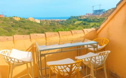 Ático en venta con vistas al mar en primera línea de campo de golf La Duquesa. Esta vivienda está lista para mudarte y disfrutar de la calidad de vida que ofrece. Cuenta con un cómodo y amplio interior distribuido en dos habitaciones, ambas con salida a terraza y uno de ellos con baño en suite, dos baños, cocina amueblada y equipada con salida a una terraza- lavadero y un amplio salón con salida a la terraza principal, desde la que podrá disfrutar de vistas totalmente despejadas a la costa, teniendo en total la vivienda 3 terrazas. Además, incluye una plaza de garaje subterránea privada y un trastero, ubicados en la planta sótano del mismo edificio en el que se encuentra el inmueble. Gracias a su orientación hacia el sur es una vivienda muy luminosa, lo que, la convierte al mismo tiempo en una vivienda con un bajo consumo energético. También, destaca por sus calidades y acabados que cumplen los más altos estándares de calidad, tales como: suelos de mármol, aire acondicionado frío-calor, hidromasaje en baño principal, amplios ventanales y puertas correderas con acristalamiento doble climalit que permiten el paso de la luz natural, amplios armarios empotrados revestidos en su interior con cajoneras y barras colgantes y puerta entrada de seguridad. Todo ello, dentro de un residencial privado y cerrado con vigilancia y conserjería las 24 horas durante los 7 días de la semana, con zonas comunitarias compuestas por piscinas comunitarias, pistas de padel y zonas ajardinadas donde descansar o pasear. Además, se encuentra cercano a la playa del Puerto de La Duquesa, a menos de 15 minutos en coche de Sotogrande y a menos de 10 minutos en coche de Estepona y Sabinillas, donde encontrará numerosos servicios y comercios. Tanto si buscas un lugar donde vivir disfrutando del sol al menos 300 días al año, como si quieres invertir para obtener una alta rentabilidad, esta vivienda ofrece todo eso y mucho más. No esperes a que te lo cuenten, ven a visitarla y si no te puedes desplazarte para ello, no dudes en solicitarnos una visita virtual.