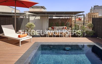 Este impresionante ático situado en un edificio esquinero cuenta con tres habitaciones con baño en suite y un estudio abierto, y una terraza privada de 100m2 a la que se accede directamente desde el piso. Esta finca regia del Eixample ha sido objeto de una completa renovación y presenta detalles interiores bien ejecutados que combinan un estilo tradicional con una estética contemporánea. Al entrar a la propiedad, encontramos una sala de estar, comedor y cocina amplios y abiertos, esta zona de living dispone de seis balcones por lo que la luz está presente en todo momento. A continuación encontramos un estudio abierto con la preciosa escalera que nos lleva a la terraza superior. En esta fantástica terraza con óptima orientación encontramos cocina de verano, comedor-chill out y piscina. Los tres dormitorios son dobles y todos en suite. La suite principal cuenta con bañera grande, ducha, vestidor y un balcón que inunda de luz esta estancia. Los otros dormitorios también son exteriores con muy buenas vistas, tienen cuarto de baño completo y armarios empotrados. La ubicación estratégica de la propiedad en una esquina achaflanada ofrece excelentes vistas de los edificios históricos cercanos, así como vistas hacia el mar Mediterráneo. Gracias a los nueve balcones, la casa tiene una excelente cantidad de luz natural durante todo el día. Para la noche, la iluminación interior diseñada por expertos crea diversas zonas de iluminación que crean una sensación de calma y elegancia. La combinación de detalles de diseño de interiores y el uso ingenioso de cada metro cuadrado distinguen a esta propiedad. El piso presenta suelos de madera con diseño de chevron, bordeados con azulejos que complementan las formas únicas de cada espacio. Los armarios empotrados en los dormitorios se combinan con los sistemas de paneles de pared, agregando un nivel de elegancia en todas las estancias. El aire acondicionado por conductos está oculto de manera inteligente, mientras que los radiadores de pared recuerdan el aspecto histórico de este clásico edificio modernista. Esta propiedad es una excelente inversión para aquellos que buscan un piso clásico de Barcelona en un edificio con menos mantenimiento debido a la reciente renovación completa. Situado en el corazón del distrito central de Barcelona, Eixample, esta propiedad se encuentra cerca de la avenida frondosa del Passeig de Sant Joan. La principal avenida comercial de Barcelona, Passeig de Gràcia, está a solo 8 minutos a pie. En el área inmediata, hay una gran selección de cafeterías, restaurantes y boutiques locales e internacionales a la vuelta de la esquina. La posición geográfica de Barcelona es un principal motivo que atrae a visitantes de todo el mundo a esta ciudad. Limita con el Mar Mediterráneo y gracias a sus kilómetros de costa, la ciudad se beneficia de un clima templado durante todo el año, donde también se puede disfrutar de su marisco y pescado fresco que sigue inspirando la escena culinaria de la zona. Además, la proximidad a las montañas permite actividades de deportes de invierno a solo dos horas en coche de la ciudad. Desde el punto de vista de la infraestructura, Barcelona se ha transformado desde los Juegos Olímpicos del ‘92, convirtiéndose en un importante centro para la creación de empresas y la innovación de tecnología.