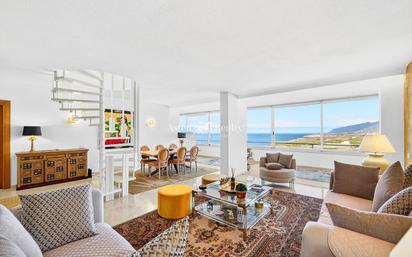 Un ático exclusivo con solárium privado, rodeado de jardines, piscinas climatizadas y el océano como vecino. ¿Listo para vivir en el sur de Tenerife como siempre soñaste? Ubicado dentro de un exclusivo resort de 8 hectáreas de jardines tropicales, junto al océano Atlántico y muy cerca de Costa Adeje, este ático ofrece una experiencia residencial inigualable. Desde su amplia terraza se disfrutan espectaculares vistas de 180º, que abarcan el océano, la costa con sus plantaciones de plátanos y la imponente silueta del Teide. La propiedad se distribuye en dos plantas: Planta principal: totalmente acristalada, con un luminoso salón, cocina equipada, 2 amplios dormitorios y 2 baños. Planta superior: gran solárium con un acogedor salón-comedor con cocina integrada, además de un dormitorio adicional con baño en suite. El diseño interior combina tonos dorados, maderas nobles, azules y blancos, creando ambientes cálidos y elegantes. La vivienda ha sido recientemente reformada y amueblada con excelente gusto. El complejo ofrece todas las comodidades de un resort tropical: 2 piscinas climatizadas Exuberantes jardines Acceso directo al mar Restaurante, 2 bares y supermercado Parque infantil Gimnasio, aquagym, 3 pistas de tenis y campo de fútbol Peluquería, servicio de masajes, alquiler de coches y recepción con seguridad 24h Numerosas plazas de aparcamiento Además, en primera línea de mar, se encuentra un beach club actualmente en proceso de renovación. Detalles adicionales: Año de construcción: 1974. Gastos de comunidad: €600/mes. IBI: €550/año. Referencia Asten Realty: 9653.
