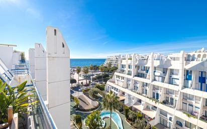 Ático con vistas al mar en Marbella House, totalmente reformado con mucho gusto, esta fantástica propiedad cuenta con 204 m2 construidos, plaza de garaje de fácil acceso y trastero. Es una oportunidad única en Marbella House, tanto por su estado como por su ubicación dentro de la urbanización. Cuenta con vistas al mar y a los fantásticos jardines de la urbanización desde todas las plantas. La propiedad cuenta con una amplia terraza en la planta principal además de otra de mayor tamaño en la planta superior, con vistas de las montañas, el mar y el skyline de Marbella. Distribuido en la planta principal con salón comedor, cocina reformada con zona de desayuno, aseo de cortesía y terraza. En la planta primera, cuenta con dos habitaciones con baño en suite y en la cubierta, otro dormitorio adicional y una gran terraza. Marbella House es una de las urbanizaciones más completas y lujosas de Marbella ciudad, donde además de seguridad 24 horas, cuenta con unos jardines tropicales reconocidos con distintos premios internacionales, piscina, gimnasio, sauna, squash y salida al Paseo Marítimo de Marbella. Esta propiedad, ubicada en el inicio de la Milla de Oro, es el lugar perfecto para disfrutar de Marbella, ya que está a escasos metros del Paseo Marítimo desde donde podrá recorrer la costa y llegar a Puerto Banús o al Puerto Deportivo de Marbella, junto al emblemático Hotel Meliá Don Pepe con restaurantes de lujo y los chiringuitos más conocidos de Marbella como Trocadero Playa y Marbella Club. Es la ubicación perfecta, todos los servicios a escasos metros de su casa, disfrutando a la vez de la tranquilidad de la ubicación inmejorable en la zona vip de la ciudad. Características: Ático 2ª línea playa Reformado Vistas al mar Céntrico A/A Frio - Calor Ascensor Cuidadas zonas comunes Piscina comunitaria Gimnasio Seguridad 24 h