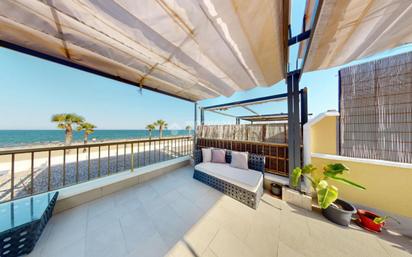 Imagina despertarte cada mañana con el sonido del mar y la luz del sol entrando suavemente por los ventanales. Este magnífico ático dúplex, ubicado en primera línea de la codiciada Playa de La Patacona, ofrece justo eso: una experiencia de vida única junto al Mediterráneo, con todas las comodidades de una construcción moderna y eficiente. Construido en el año 2010, este hogar se encuentra en un edificio contemporáneo que combina estilo, funcionalidad y una ubicación privilegiada. Desde su terraza con vistas abiertas al mar, se disfruta de una panorámica espectacular, perfecta para desayunos al aire libre, cenas al atardecer o simplemente dejarse llevar por la brisa marina. La vivienda se distribuye en dos plantas cuidadosamente diseñadas para aportar amplitud y privacidad, en total cuenta con una superficie construida de 92 m2. En la planta principal encontramos un luminoso salón-comedor con salida directa a a lo que verdaderamente convierte esta vivienda en algo excepcional sus 60 m2 adicionales de terraza. Un espacio exterior privado que se convierte en una prolongación natural del salón, donde el mar se convierte en parte del día a día. Con suficiente superficie para crear una zona chill out, un comedor al aire libre, una pérgola con tumbonas o incluso un pequeño jardín urbano, esta terraza no es solo un lujo: es un estilo de vida, una cocina independiente con diseño moderno y mucho espacio de almacenamiento, y un baño completo con plato de ducha. Todo pensado para el confort diario. Bajando por una elegante escalera interior accedemos a la inferior, donde se ubica el dormitorio principal, amplio y acogedor, con armarios empotrados de gran capacidad además del segundo dormitorio doble, el cual también cuenta con un gran armario empotrado. Aquí también encontramos un segundo baño completo, esta vez equipado con bañera, perfecto para relajarse tras un día de playa. La vivienda cuenta con aire acondicionado por conductos, lo que garantiza una temperatura ideal durante todo el año, y con ventanas Climalit, que aíslan perfectamente tanto del ruido como de los cambios térmicos. Los acabados son de calidad: suelos porcelánicos, paredes lisas, carpintería moderna y una atmósfera limpia, luminosa y contemporánea. Como valor añadido, el precio incluye una plaza de garaje en el mismo edificio, con acceso directo desde el ascensor, lo cual aporta una comodidad esencial en esta zona tan demandada. Ubicado en una de las mejores zonas costeras de Valencia, este ático no solo ofrece mar y luz, sino también una conexión directa con la ciudad, servicios a pie de calle, restaurantes, zonas verdes, carril bici y todo lo necesario para vivir con calidad, estilo y tranquilidad. Este ático dúplex no es solo una vivienda, es una forma de vida.