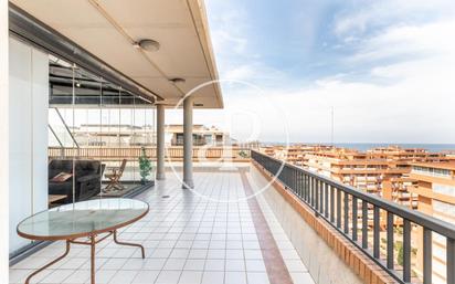 ÁTICO DÚPLEX EN VENTA EN LA PATACONA Ático dúplex con dos terrazas, en perfecto estado de conservación y con una ubicación inmejorable, frente al mar, en un residencial con piscina. aProperties tiene el placer de presentar este exclusivo ático de 340 m², que se distribuye en dos plantas con dos amplias terrazas. En la planta principal encontramos un luminoso salón-comedor con acceso a una espaciosa terraza, una cocina completamente equipada, dos cuartos de baño completos y tres amplios dormitorios con armarios empotrados, todos ellos con impresionantes vistas al mar. El dormitorio principal dispone de baño en suite. En la planta superior, encontramos un salón completamente acristalado, una estancia encantadora con vistas panorámicas al mar, una cocina totalmente equipada, un cuarto de baño completo y una enorme terraza con vistas espectaculares. Plaza de garaje y trastero incluidos en el precio. Patacona es una de las mejores playas de Valencia y cuenta con todos los servicios esenciales: restaurantes, transporte público, actividades náuticas, colegios y hospitales. Para más información, no dude en ponerse en contacto con nosotros. Estaremos encantados de atenderle. Ref. VV2507023