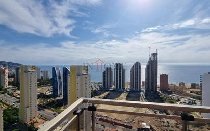 En venta magnifico Ático con vistas al mar en la playa de poniente, vivienda de 2 dormitorios, él dormitorio principal con vestidor, 2 baños, salón-comedor, cocina independiente con galería y terraza. Preinstalación de aire acondicionado. Plaza de garaje en planta sótano y trastero. Urbanización privada con piscina, parque infantil y pistas de tenis.
