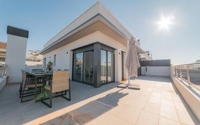 Este elegante ático dúplex, ubicado en un nuevo desarrollo residencial de Sitges, te ofrece la combinación perfecta de lujo, comodidad y ubicación. Con sus amplias terrazas y vistas panorámicas al mar, este hogar es el lugar ideal para relajarte y disfrutar del estilo de vida mediterráneo. Características destacadas: Ubicación privilegiada: A poca distancia del centro de Sitges, la estación de tren y las hermosas playas, tendrás todo a tu alcance.Diseño moderno: El ático cuenta con un diseño contemporáneo, con acabados de alta calidad y una distribución funcional.Amplias terrazas: Disfruta de dos terrazas privadas, una envolvente con vistas al entorno y otra en la azotea con vistas al mar, perfectas para relajarte y disfrutar del aire libre.Luminosidad: La abundancia de luz natural y las grandes puertas correderas crean un ambiente luminoso y acogedor.Comodidades: El ático está completamente equipado con todo lo que necesitas, incluyendo aire acondicionado, cocina moderna y muebles de diseño.Privacidad: El ascensor te lleva directamente a la puerta de tu hogar, garantizando tu privacidad y comodidad.Distribución: Zona de día: Amplio salón-comedor con cocina abierta, totalmente equipada y conectada a la terraza envolvente.Dormitorios: Dos dormitorios dobles, uno en suite con baño privado y otro con acceso a una terraza privada.Baños: Dos baños modernos con ducha.Terraza en la azotea: Espacio ideal para relajarse, tomar el sol y disfrutar de las vistas al mar.¡No pierdas la oportunidad de vivir en este paraíso urbano!