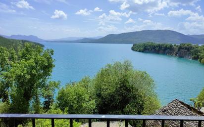 Gran casa tradicional habitable y pajar con vistas espectaculares al lago de Mediano y el Pirineo. A tan sólo 5 minutos de Aínsa, en un tranquilo pueblo del Pirineo aragonés, se encuentra ese encantador conjunto que goza de unas vistas privilegiadas. La vivienda principal, rehabilitada en los años 90 y en buen estado de conservación, cuenta con unos 290 m² distribuidos en tres plantas: - Planta calle: patio de entrada, cuarto de calderas y antigua cuadra. - Primera planta: amplio salón con chimenea, cocina independiente, baño completo y tres dormitorios. - Segunda planta: segundo salón con chimenea, tres dormitorios, un baño completo y un aseo adicional. - Bajocubierta: espacio tipo falsa utilizado como trastero. Dispone de calefacción de gasoil, estructura y tejado en excelente estado, y ventanas de cristal simple. La orientación sur-este-norte permite disfrutar de luz natural durante todo el día, así como de las impresionantes vistas panorámicas. Justo frente a la casa, se encuentra un bonito pajar de unos 150 m2 con un pequeño jardín, también en suelo urbano, con posibilidad de rehabilitación como segunda vivienda. Una oportunidad única para quienes buscan un entorno natural, tranquilidad, y al mismo tiempo cercanía a Aínsa, uno de los pueblos más bonitos de España, con todos los servicios y una vibrante vida cultural y turística.