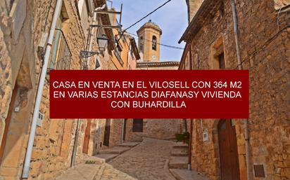 CASA EN VENTA EN EL TERMINO MUNICIPAL DE LÉRIDA, EL VILOSELL , CON 364 M2 CONSTRUIDOS REPARTIDOS EN 242 M2 DE ALMACEN EN PLANTA BAJA DE LA VIVIENDA CON RECIBIDOR, BODEGA ,TRASTERO CON BOMBA Y DEPOSITO DE GASOIL, TALLER Y OTRAS ESTANCIAS DE MÁS. Y 122M2 DE VIVIENDA EN PRIMERA PLANTA SE DISPONE DE CALEFACCIÓN, AMPLIA ESTANCIA DE UNOS 29 M2, COMEDOR-SALÓN DE UNOS 30 M2 CON SALIDA A BALCÓN A LA CALLE PRINCIPAL, COCINA INDEPENDIENTE A REFORMAR Y 1 BAÑO A REFORMAR, 4 HABITACIONES DOBLES EN LA CUAL DOS DE ELLAS SIN VENTANAS AL EXTERIOR. EN SEGUNDA PLANTA DISPONEMOS DE RECIBIDOR DE ENTRADA, UNA AMPLIA SALA DE 20 M2, OTRA SALA DE 15 M2 CON MUCHA LUMINOSIDAD Y GRANDE Y AMPLIA BUHARDILLA DE 60 M2 MUY LUMINOSA. CASA CON MUCHAS ESTANCIAS BRINDANDO GRANDES OPORTUNIDADES PARA SU IMAGINACIÓN EN PUEBLO TRANQUILO , PUEBLO CIRCULAR DE CALLES ADOQUINADAS, ANTIGUAMENTE AMURALLADO Y ELEVADO EN UN CERRO QUE DOMINA SOBRE UN EXTENSO PAISAJE DE GARRIGA. SITUADO A LOS PIES DE LAS MONTAÑAS DE PRADES, EL PUEBLO DISPONE DE UNA ANTIGUA IGLESIA, LA CAPILLA Y LA CRUZ MONUMENTAL DE SAN SEBASTIÁN, DE DOS CASAS RURALES, DOS RESTAURANTES Y UNA BODEGA.