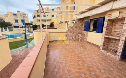 Duplex adosado de tres dormitorios ubicado en una preciosa urbanización con piscina privada y zonas ajardinadas. La vivienda cuenta con dos plantas más solarium privado barbacoa en la azotea. La planta inferior cuenta con tres entradas, una en la cocina con patio, cuenta con despensa y cuarto de lavandería, otra entrada principal en el salón comedor con aseo en esta planta y la otra entrada, en la parte trasera con acceso directo a una gran terraza con toldo corrido en frente de la piscina y el jardín del residencial. En la planta superior encontramos tres dormitorios con armarios empotrados y amplios ventanales, un baño completo y acceso a la azotea. La vivienda se vende con prácticamente todo su mobiliario y totalmente equipada para entrar a vivir.