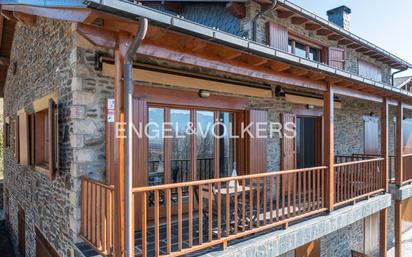 Disfruta de La Cerdanya en este apartamento dúplex, en La Pleta de Saga, con vistas abiertas a las montañas, situado en una comunidad muy cuidada con amplio jardín y piscina. La vivienda se distribuye en dos niveles. En la planta principal encontramos un salón con chimenea y techo de doble altura ,que aporta gran sensación de amplitud y luz, con salida a una agradable terraza orientada hacia La Tosa. En esta misma planta se ubican el comedor, la cocina, una habitación tipo suite con acceso directo a la terraza, dos dormitorios y un baño completo. La planta superior abuhardillada acoge una espaciosa sala polivalente ideal como zona de estar, estudio o espacio de juegos, además de una amplia habitación en suite. La propiedad se completa con un garaje tipo box cerrado con capacidad para un vehículo.