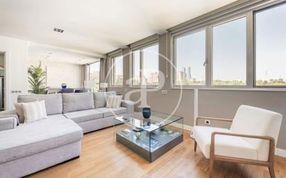 ATICO DUPLEX EN TERRAZA PRIVADA Y PISCINA EN CIUDAD LINEAL Exclusivo ático de 3 dormitorios y 3 baños, con terraza privada de 35 m² y piscina propia, ubicado en una prestigiosa urbanización con seguridad 24 horas, zonas ajardinadas, piscina comunitaria y gimnasio. Características principales: * Vivienda en 3 plantas * 3 dormitorios y 3 baños * Terraza privada con piscina y vistas totalmente despejadas * 2 plazas de garaje de acceso directo * Trastero incluido * Calefacción por suelo radiante en las plantas principales * Suelos de madera de nogal y acabados de alta gama * Triple orientación: mucha luz natural durante todo el día * Toda la vivienda es exterior Distribución: Planta de entrada: Amplio hall recibidor, gran salón-comedor con varios ambientes y espectaculares vistas, cocina independiente completamente equipada con zona de lavado y aseo de cortesía. Planta de dormitorios: Espacio tipo despacho, un dormitorio secundario amplio, un baño completo con ventana, y un enorme dormitorio principal con baño en suite y numerosos armarios tipo vestidor. Posibilidad de reconvertirlo en dos dormitorios, manteniendo el total de 3 habitaciones. Planta superior: Tercer dormitorio o zona polivalente (despacho/sala de estar), con acceso directo a la terraza privada con piscina, ideal para disfrutar del aire libre con total privacidad. El edificio donde se encuentra ofrece exclusivas comodidades, como servicio de conserjería las 24 horas, un espectacular gimnasio, piscina comunitaria y un jardín meticulosamente cuidado. Además, la vivienda incluye dos amplias plazas de garaje con acceso directo y un trastero, proporcionando un extra de almacenamiento y comodidad. Una ubicación privilegiada: situado en una de las urbanizaciones más exclusivas y representativas de Isla de Chamartín, este ático se encuentra en un entorno moderno y bien comunicado. Su cercanía a importantes vías de acceso como la A1 y la M30 facilita la movilidad, mientras que la estación de Fuente de la Mora, a pocos metros de distancia, permite una rápida conexión con el resto de la ciudad. Desde la misma calle Dulce Chacón se accede por un puente peatonal al Pinar de Chamartín en la Calle de Arturo Soria. Una vivienda única, ideal para quienes buscan confort, espacio, privacidad y estilo en una ubicación tranquila y segura. ¿Te imaginas vivir aquí? Ref. VMN2508002