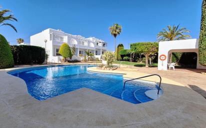 Este encantador dúplex se encuentra ubicado en una de las zonas más cotizadas de Mojácar Playa, a tan solo unos metros de la playa y muy cerca de todos los servicios esenciales como supermercados, restaurantes, bares y zonas de ocio. Su excelente localización lo convierte en una opción perfecta tanto como residencia habitual, segunda vivienda o inversión vacacional. La propiedad cuenta con una superficie construida de 80 m², distribuidos de forma funcional y cómoda en dos plantas. El acceso a la vivienda se realiza a través de un agradable jardín delantero que también puede utilizarse como aparcamiento privado para un vehículo, aportando comodidad y practicidad. En la planta baja, al entrar en la vivienda, nos recibe un amplio y luminoso salón-comedor con orientación sur, cuyas ventanas permiten la entrada de abundante luz natural y ofrecen acceso directo a la terraza. Este espacio resulta ideal para relajarse o compartir momentos en familia. La cocina, totalmente equipada, se encuentra junto al salón y dispone de acceso al jardín trasero, perfecto para disfrutar de comidas al aire libre. En esta misma planta se sitúa un dormitorio doble, ideal como dormitorio principal en planta baja o habitación de invitados, así como un cuarto de baño completo con ducha. Desde el salón parte la escalera que conduce a la planta superior. La planta alta alberga dos dormitorios dobles adicionales, ambos con armarios empotrados y acceso a terrazas privadas. Una de estas terrazas comunica directamente con un solárium desde el que se pueden disfrutar magníficas vistas al mar y al pintoresco pueblo de Mojácar, creando un espacio privilegiado para relajarse y disfrutar del entorno. En esta planta también se encuentra un segundo baño completo que da servicio a los dormitorios. La vivienda dispone de aire acondicionado en el salón y en los dormitorios de la planta superior, garantizando el confort durante los meses más cálidos. Forma parte de una comunidad residencial muy bien cuidada, que ofrece una amplia piscina comunitaria rodeada de zonas ajardinadas, ideales para el descanso y el disfrute del buen clima de la zona. Gracias a su orientación sur, sus espacios exteriores y su cercanía a la playa, este dúplex representa una magnífica oportunidad para quienes buscan una vivienda luminosa, bien ubicada y con todas las comodidades en uno de los destinos más atractivos de la costa de Almería.
