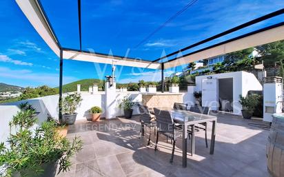 Situada en Roca Llisa, una de las mejores zonas residenciales de la isla, esta encantadora casa adosada ofrece una magnífica oportunidad a quienes buscan vivir en una zona tranquila y en plena naturaleza, a tan solo 10 minutos de Ibiza y 15 del aeropuerto. Además, a tan sólo 5 minutos se encuentra la preciosa Cala Olivera, una de las calas más bellas de la isla. En la planta baja, la casa dispone de un amplio salón-comedor, una cocina abierta recién renovada, una amplia terraza parcialmente cubierta, una habitación y un aseo con ducha. También se cuenta con un cuarto de lavandería. En la primera planta se encuentra una magnífica y amplia habitación principal con baño en suite recién renovado, una amplia terraza, así como otra habitación doble, un baño con ducha y una zona de armarios. En la tercera planta, se encuentra una asombrosa terraza totalmente amueblada donde poder relajarte viendo los atardeceres y disfrutar de cenas y barbacoas, con estupendas vistas al campo de golf. También se cuenta con una ducha con agua fría y agua caliente. La casa dispone de aire acondicionado por conductos en todas las habitaciones, calefacción por wifi de bajo consumo, repetidores de wifi en todas las plantas para disponer de la mejor cobertura, antena de televisión en todas las habitaciones, mosquiteras a medida en todas las ventanas, video portero etc El complejo en el que se encuentra el dúplex dispone de piscina comunitaria. La comunidad de Roca Llisa cuenta también con acceso vigilado 24 horas y continuas rondas del personal de seguridad, haciendo de éste, en definitiva un lugar muy seguro y confortable. La vivienda dispone de plaza de parking. #ref:WV_0071