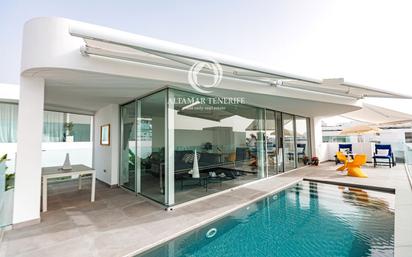 Ubicada en Callao Salvaje, en la exclusiva zona de Rocabella, esta villa de lujo se encuentra en una residencial privada, ofreciendo tranquilidad y privacidad, pero a la vez cerca de todos los servicios esenciales. Diseñada por el prestigioso arquitecto Leonardo Omar, combina elegancia y modernidad con impresionantes vistas directas al océano. Distribuida en tres niveles, en la planta -1 cuenta con un garaje para dos coches, lavadero y un dormitorio con baño privado. En la planta 0 se encuentran tres dormitorios en suite, todos con terraza y acceso al jardín que rodea la villa. La primera planta alberga un espacioso salón con cocina abierta, un baño y una terraza con piscina climatizada y vistas panorámicas al mar. La propiedad dispone de ascensor en todas las plantas, una parcela de 254 m² y 211 m² construidos. Construida en 2021, se vende completamente amueblada y lista para entrar a vivir. Los gastos anuales incluyen un IBI de 800 € y una comunidad de 25 € al mes. Para más información o visita, contáctanos.