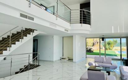 VIVIENDA UNIFAMILIAR DESARROLLADA POR EL PRESTIGIOSO ESTUDIO DE ARQUITECTURA “FUSTER ARQUITECTOS” DONDE LA LUZ INVADE CADA UNO DE LOS RINCONES DE LA MISMA GRACIAS A SUS AMPLÍSIMOS VENTANALES Y SUS CUATRO ORIENTACIONES. CUENTA CON ESPACIOS DIFERENCIADOS Y PERFECTAMENTE CONECTADOS ENTRE SÍ CON DOBLE ALTURA EN LA ESTANCIA PRINCIPAL, DESDE LA QUE SE ACCEDE A LA COCINA, VARIOS SERVICIOS HIGIÉNICOS Y DEPENDENCIAS EN PLANTA BAJA. AL SUBIR POR SU ESCALERA DE DISEÑO, ENCONTRAREMOS LA PLANTA DONDE SE UBICAN LAS DEPENDENCIAS DESTINADAS A DESCANSO DE LA FAMILIA E INVITADOS CON DIFERENTES SERVICIOS HIGIÉNICOS EN SUITE Y DE SERVICIO, ASÍ COMO VESTIDOR EN LA HABITACIÓN PRINCIPAL, Y LAS TERRAZAS-SOLÁRIUM Y MIRADORES DE LA VIVIENDA DESE DONDE SE PUEDE DIVISAR TODA LA TRAYECTORIA DEL SOL DESDE QUE NACE HASTA QUE ANOCHECE, POR SU PERFECTA ORIENTACIÓN HACIA EL SUR (MEDIO DÍA). EN LA PLANTA SÓTANO, QUE CUENTA CON PATIO PARA VENTILACIÓN E ILUMINACIÓN NATURAL, ENCONTRAMOS DIFERENTES DEPENDENCIAS, DESTINADAS A DESPACHO, GIMNASIO, SALA DE CINE, SALÓN DE JUEGOS LAVANDERÍA Y SERVICIOS HIGIÉNICOS. SE COMPLETA LA VIVIENDA CON LA PARCELA QUE INCLUYE JARDÍN, PARCELA CON CÉSPED NATURAL Y PISCINA PROPIA, ADEMÁS, JUNTO A LA VILLA, SE ENCUENTRA UNA ZONA INFANTIL DE USO EXCLUSIVO DE LOS VECINOS DE LA ZONA. LOS ACABADOS DE LA VIVIENDA SON DE AUTÉNTICO LUJO: CARPINTERÍA EXTERIOR CON ROTURA DE PUENTE TÉRMICO ABATIBLE Y OSCILO-BATIENTE CON VIDRIOS DE ALTO AISLAMIENTO E INSONORIZACIÓN, CARPINTERÍA INTERIOR LACADA BLANCA, CON PUERTAS CORREDERAS OCULTAS EN COCINA Y PUERTAS DE MADERA NOBLE DE ZEBRANO EN PLANTA SUPERIOR. LOS SOLADOS SON DE PORCELÁNICO RECTIFICADO DE GRAN FORMATO Y LOS CERÁMICOS DE DISEÑOS DE TENDENCIA. LA VIVIENDA SE ENCUENTRA PERFECTAMENTE UBICADA A ESCASOS METROS DEL CENTRO COMERCIAL L´ALJUB Y EL CENTRO COMERCIAL CARREFOUR ELCHE, CON ACCESO INMEDIATO A LA AUTOVÍA A7 Y A LA NACIONAL N340. SI BUSCA UNA VIVIENDA DE DISEÑO EXCLUSIVO Y ALTO STANDING, ESTA ES SU VIVIENDA. *La información de este anuncio en su totalidad (Fotos, texto o cualquier otro contenido del mismo) se muestra a título informativo y no contractual y no es vinculante, dado que la información es ofrecida por terceros y puede contener errores. Este inmueble está sujeto a cambios de precio o retirada del mercado sin previo aviso. El precio no incluye lo siguiente:, ITP y otros gastos de la Compraventa (Notaria, Gestoría y registro).