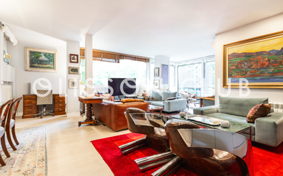 Olisson Club te invita a descubrir un magnífico piso de más de 200 m² en una de las urbanizaciones más emblemáticas de Arturo Soria, un barrio tranquilo y familiar de Madrid. Este oasis urbano combina lo mejor de la vida moderna con un entorno seguro y relajante, gracias a sus amplias zonas verdes, dos impresionantes piscinas y seguridad 24 horas, siete días a la semana. La arquitectura brutalista del edificio añade un toque de sofisticación y carácter. Al ingresar, serás recibido por un elegante baño de cortesía completo, una introducción perfecta a la maravilla que nos espera. A la derecha, la cocina es un verdadero sueño hecho realidad: completamente renovada, cuenta con una moderna península y una encantadora zona de comedor, ideal para desayunos tranquilos. Además, una funcional zona de lavandería y un acogedor despacho te brindan la practicidad que necesitas en tu día a día. La cocina, el despacho y la zona de lavandería contaría con un segundo acceso directo de servicio. A la izquierda, el amplio salón comedor se despliega en varios ambientes que invitan a la convivencia y al relax. Con una librería a medida que se erige como pieza central, los grandes ventanales permiten que la luz natural inunde cada rincón, creando un ambiente cálido y acogedor que hará que cada momento en casa sea especial. Al fondo, una elegante separación nos lleva a la zona de noche, accesible a través de un ancho pasillo adornado con más librerías que realzan la sensación de un hogar literario y acogedor. Aquí encontrarás tres habitaciones, todas exteriores y llenas de luz, junto a dos baños completos, uno de ellos en suite, que ofrece total privacidad y confort en el dormitorio principal. Este espectacular piso ha sido reformado con un estilo moderno pero acogedor, convirtiéndolo en un lugar ideal para entrar a vivir de inmediato. Cada detalle ha sido cuidadosamente pensado para ofrecerte la mejor calidad de vida en uno de los barrios más deseados de Madrid. Cuenta con aire acondicionado, y una plaza de garaje en el mismo edificio. [IW]