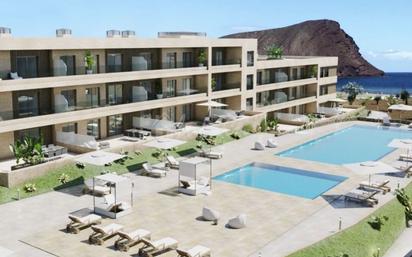 New build, apartments for sale, with 2 bedrooms with fitted wardrobes, 2 bathrooms, 90m2 plus a 20m2 terrace in the "Sotavento Suites" residential complex. First floor apartment with lateral sea and garden views. There is direct access to La Tejita beach. The complex has large garden areas, two swimming pools heated and another for children and a paddle tennis court. There is also a parking space and storeroom included in the sale. Completion date is November 2024